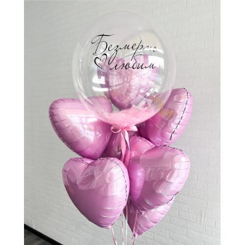 В набор входит большой шар с перьями ( цвет перьев можно выбрать, надпись также любая ваша), 7 сердечек любого цвета или звезд. Дополнительно можно нанести текст пожелания на сердечки или комплименты, зашифрованные фразы , 350 р одно нанесение.